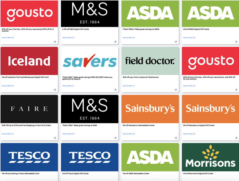 To obtain the discount, you either apply for a code or buy gift vouchers; the website makes the process clear. For example, most of the major supermarkets have a voucher scheme with 4-6% discount, so you pay £94-£96 for a £100 gift card that you can easily use at the checkout of the chosen store. With the current high price of groceries, you only have to do this 10 or 11 times, and you have made a saving.