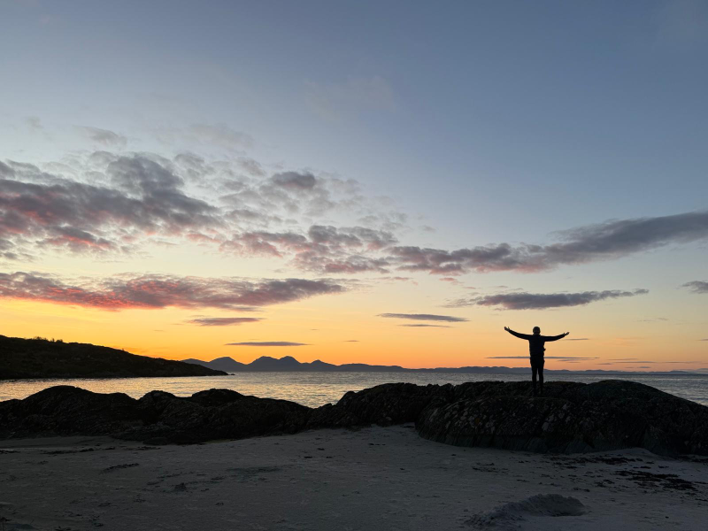 That evening, we took a short hike up to Brownie’s Chair and were lucky enough to spot a pair of sea eagles along the way. We also saw some goats on the island and enjoyed a beautiful sunset over the Paps of Jura on our walk back to the tents.